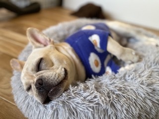 ・お腹と足元を温める:お出かけ時や寝る時に、犬用腹巻を使う