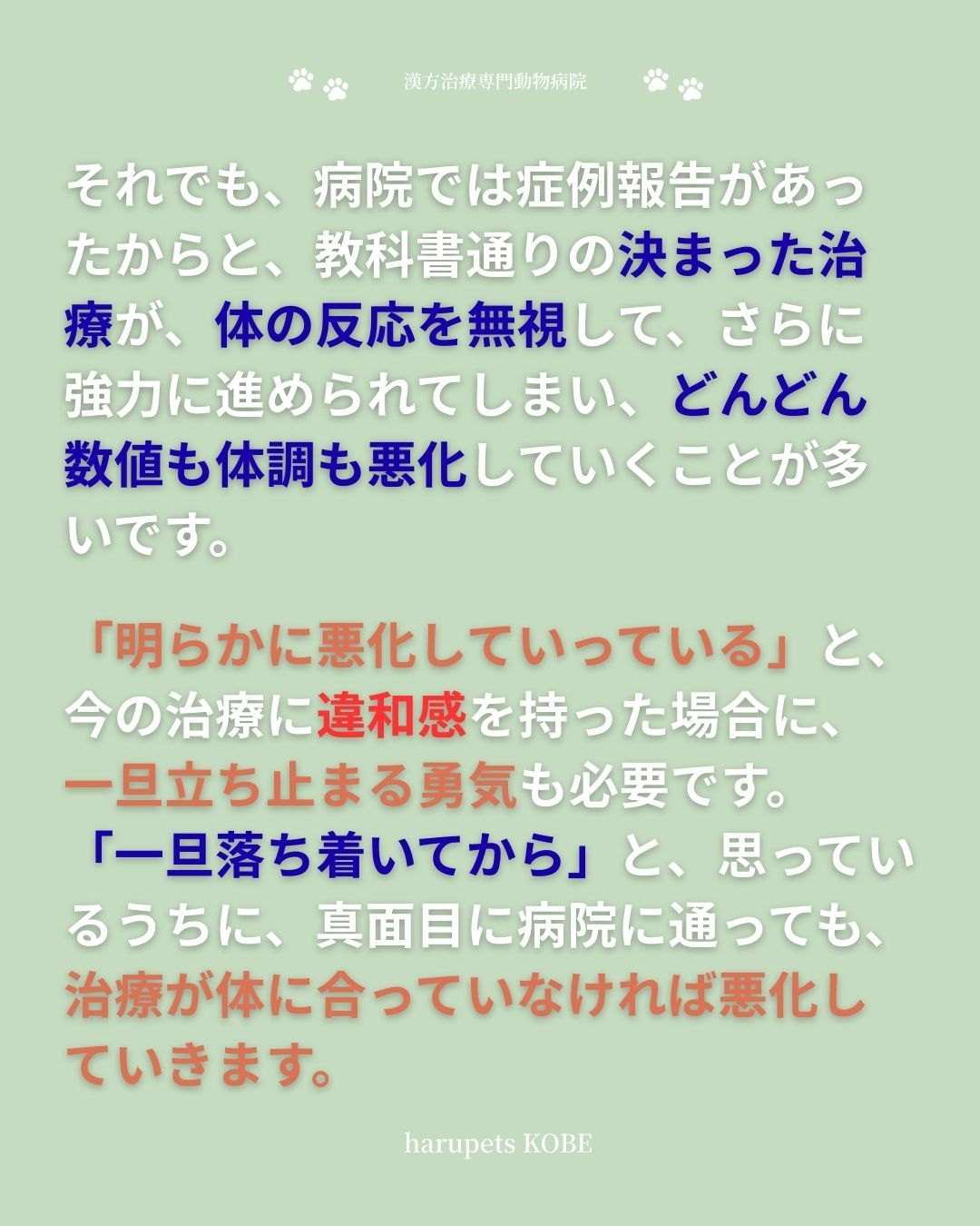 それでも、病院では症例報告があったからと、教科書通りの決まった治療が、体の反応を無視して、さらに強力に進められてしまい、どんどん数値も体調も悪化していくことが多いです。「明らかに悪化していっている」と、今の治療に違和感を持った場合に、一旦立ち止まる勇気も必要です。